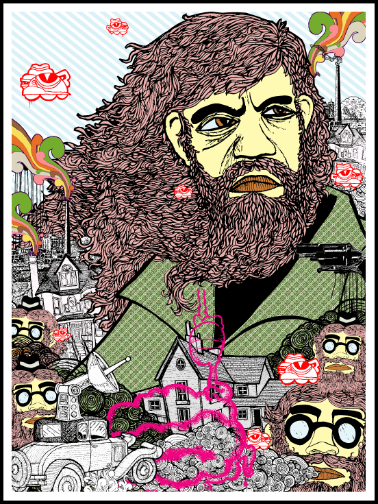 A bunch of drawings from my sketch books scanned in, tweaked and collaged in illustrator. People always ask me if that guy is anyone. Nope, just a guy from my head.