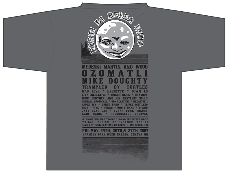 Project: Festi Di Bella Luna T-shirt (Back) Client: Guerilla promotions 2007