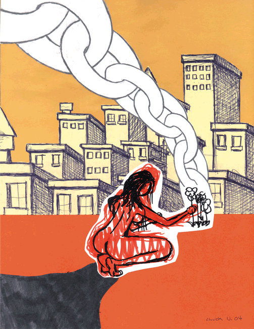 Title: Orange girl number 1. Medium : Pens, markers, construction paper. about 12” x 18“ inches 2004