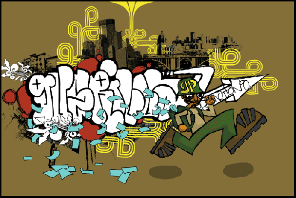 This was fun. I try not to go back to my graffiti roots very often, as I think alot of time graf in design is kind of played out. But I had no choice. That Guerilla throw up just has to be there.